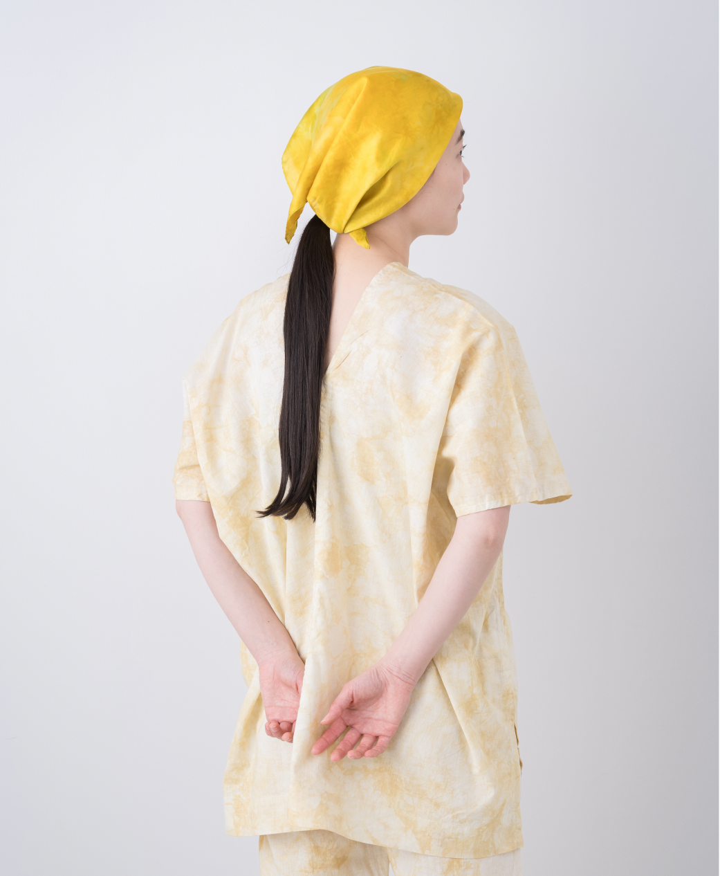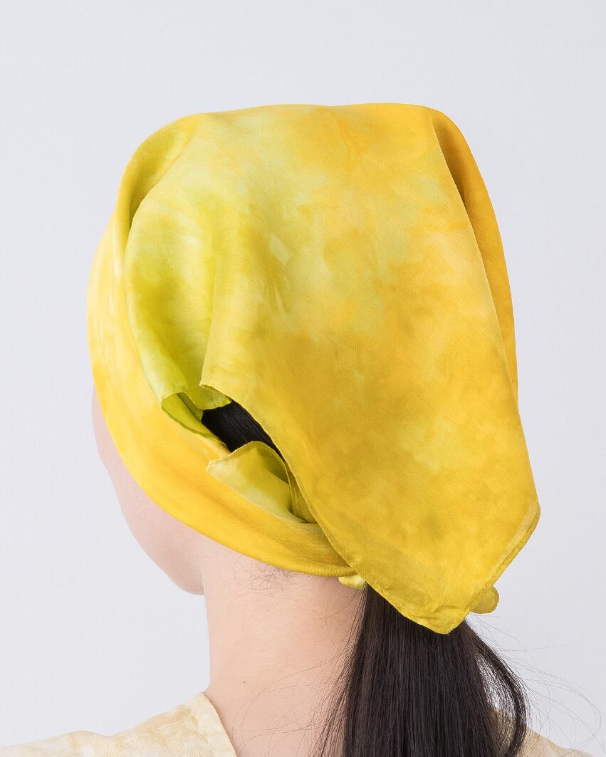 3月の色mimosaをイメージして染めあげた籠染バンダナ。