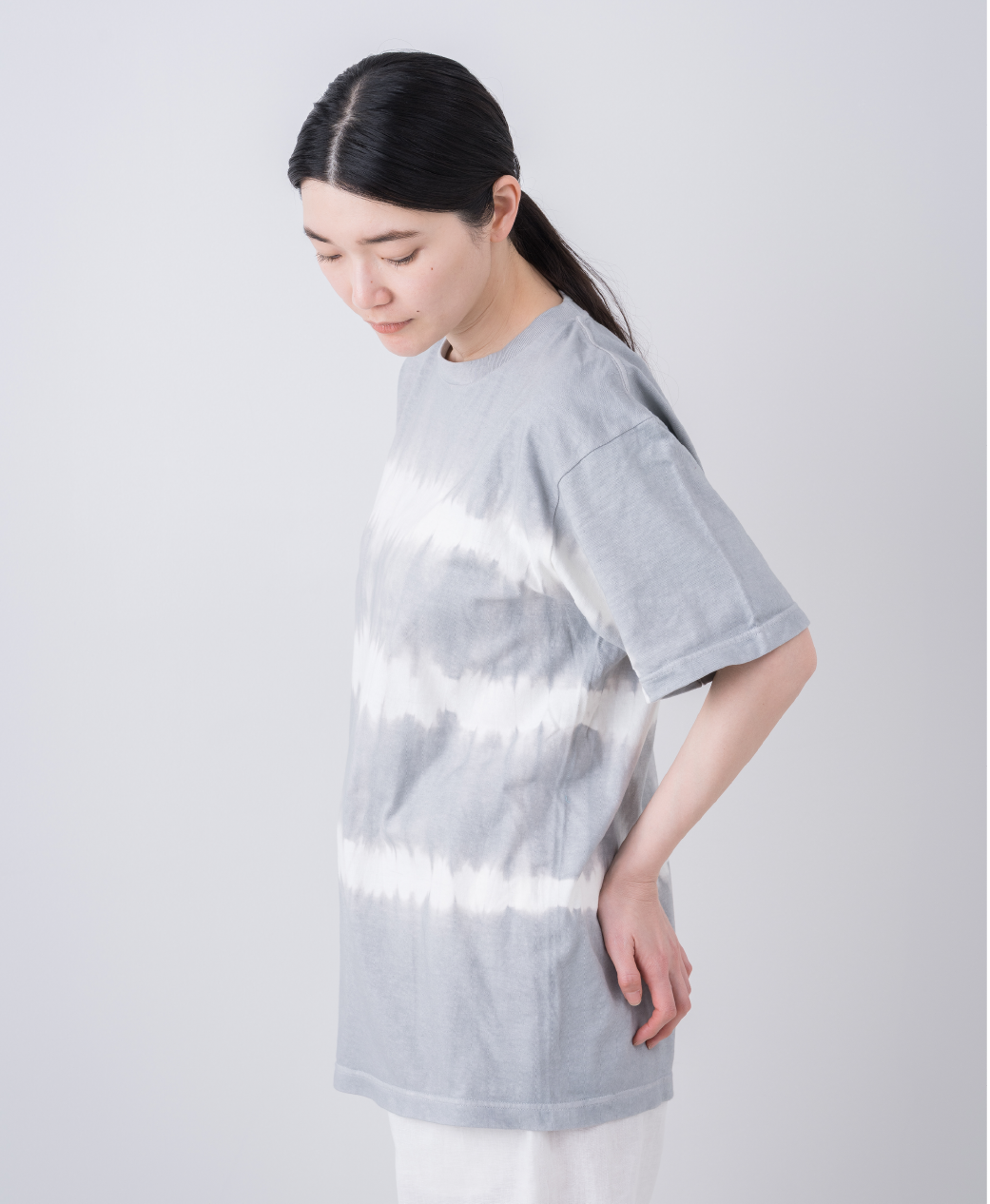 シンプルながらも飽きのこないデザインに染め上げました。夏らしい爽やかな染めのTシャツはデニムやカーゴパンツなどカジュアルなコーディネートに合わせやすく、アクセントになる1着です。ユニセックスで男女問わずにご着用いただけます。