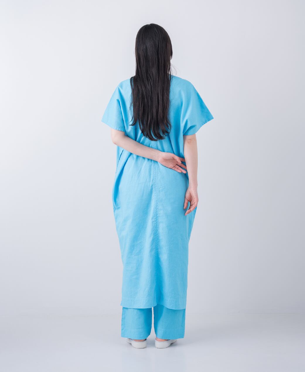 爽やかなスカイブルーで染め上げたストレートパンツ。