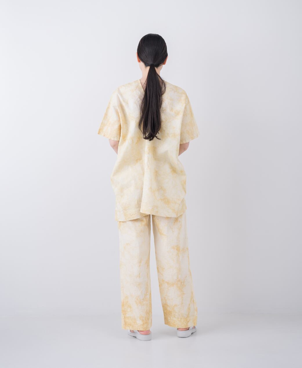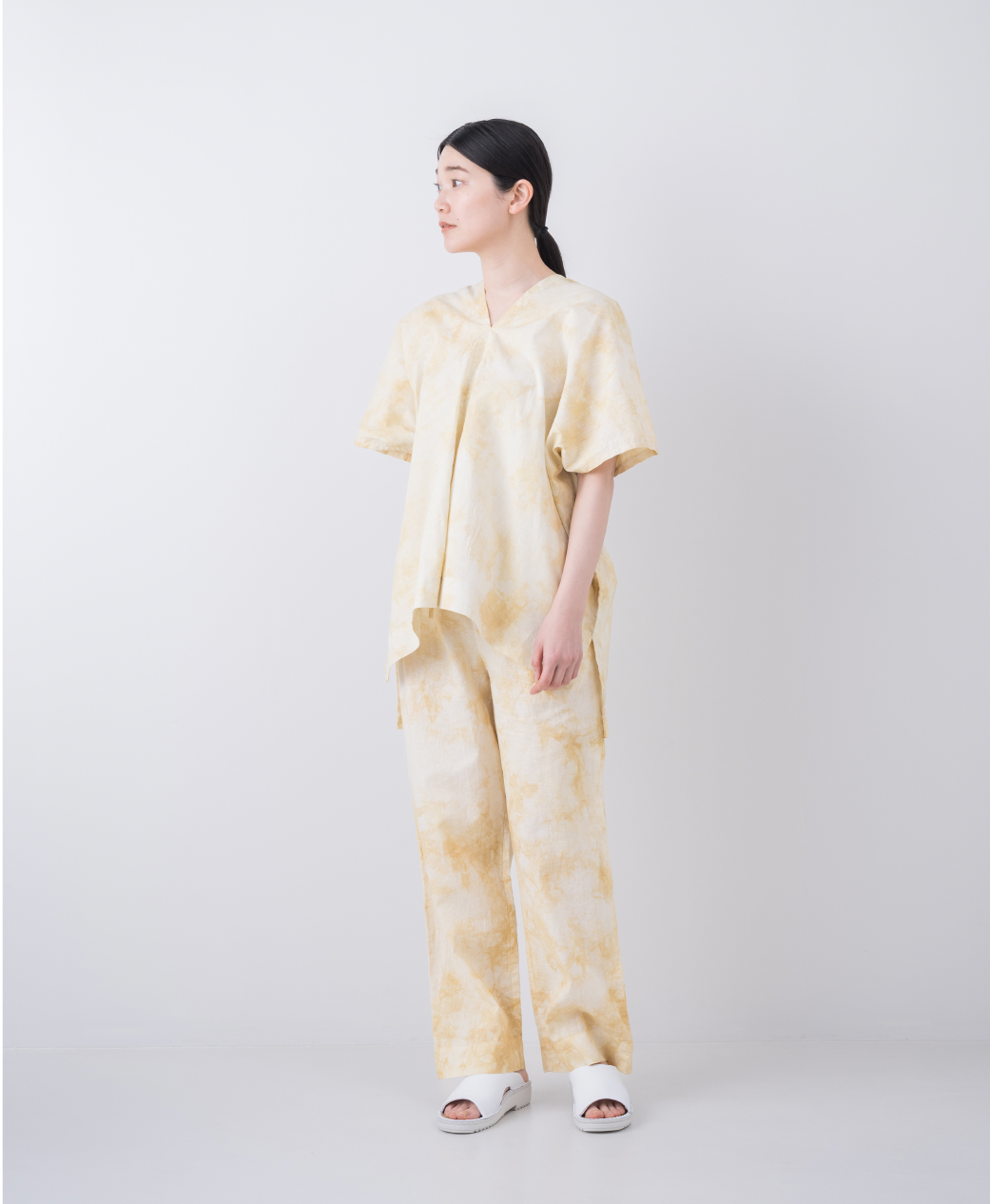 渋めのミモザ色の濃淡で籠染したカットソー。