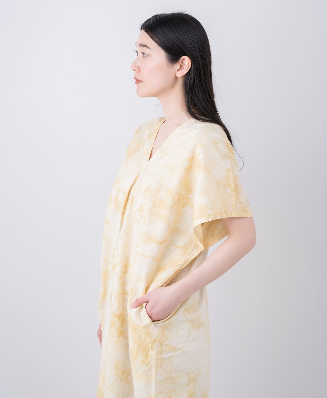 古来からの民族衣装「貫頭着」を桐染の解釈で現代風に仕立てたワンピース。