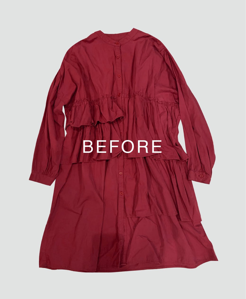 ■染め直しは、お洋服を染め変えるものでお洋服を綺麗にするものではありません。薄い色の染め直しの際はシミや汚れはそのまま残ります。
