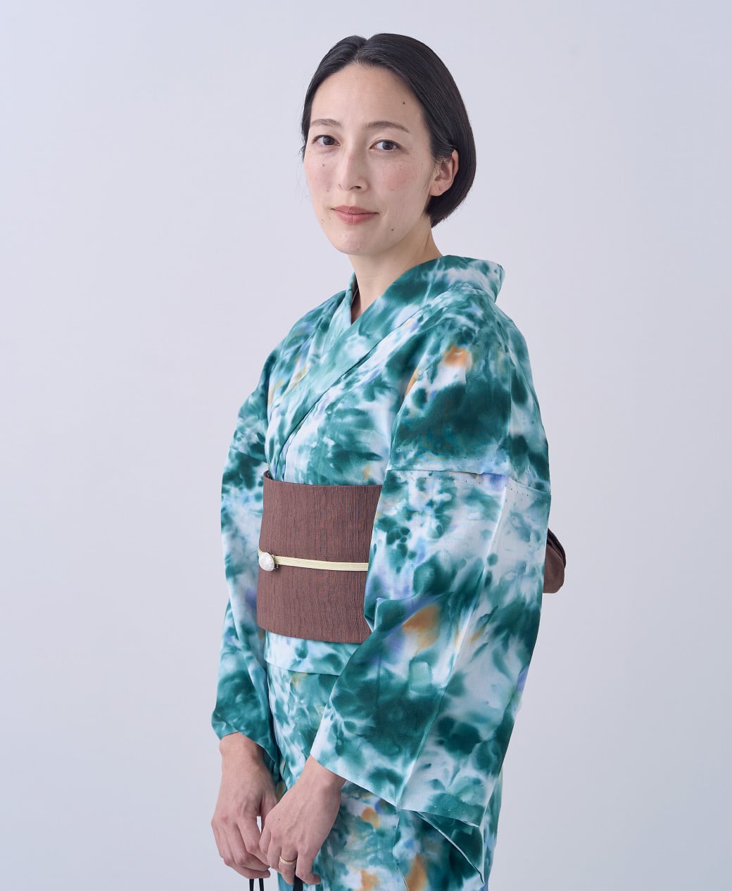 生地の上で染料を混じらせる事で生まれる色の重なり。